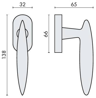 Béquille de fenêtre PEGASO sur rosace ovale, fournie sans mécanisme DK