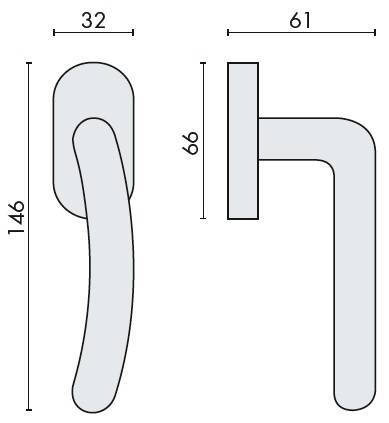Béquille de fenêtre SIRIO sur rosace ovale, fournie sans mécanisme DK (sens de la béquille à préciser)