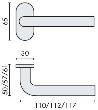 Paire de béquilles L 16 mm, montée sur rosace ovale fine de 4 mm à sous construction aluminium, avec roulement à billes, offrant 2 points de fixations permettant la pose de vis traversantes