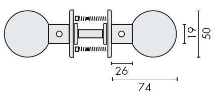 Paire de boutons boule mobile, montée sur rosace fine de 4 mm à sous construction aluminium, avec roulement à billes, offrant 4 points de fixations permettant la pose de vis traversantes