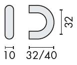 Tirant de meuble en U Ø 10 mm, entraxe 32 mm, inox brossé 316