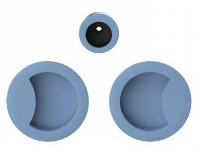 Kit pour portes coulissantes composé de deux poignées encastrées avec tirant demi-lune et tirant rond encastré dans le champ de la porte