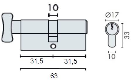 Cylindre européen bouton ovale à clé incopiable breveté 2038, avec une longueur de base de 63mm nickelé mat cylindre débrayable 3 clefs