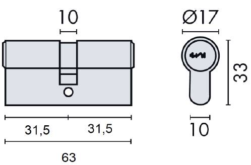 Cylindre européen EXS 4000 2 entrées 31.5x31.5 nickelé mat 3 clés